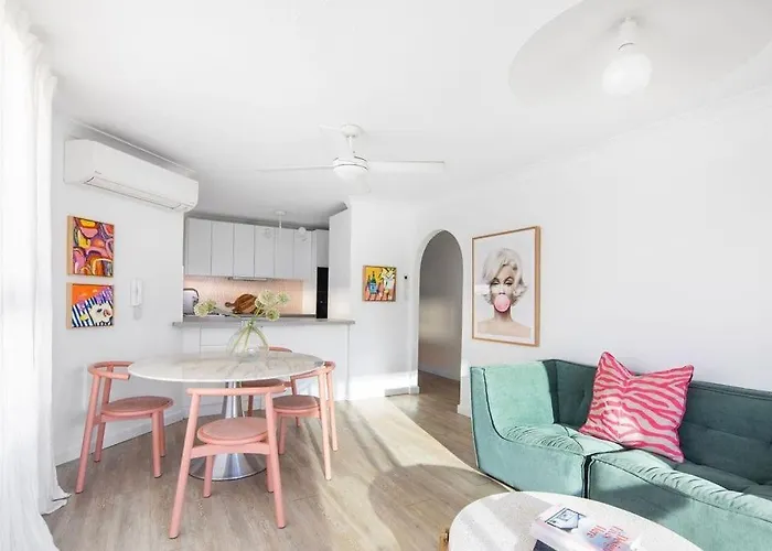 73m²のBlush On Broadbeach- Beachside And Pet Friendly, 3Rd Floor Walk Up ゴールドコーストアパートはゴールドコーストから徒歩で25分で、アドレナリン パークなどの家族連れに人気のスポットから2.6キロメートル離れた所の場所にあります。 カスケード・ガーデンズすぐ近くに位置するこの寝室2室のアパートで、顧客はプライベートなプールを利用できます。